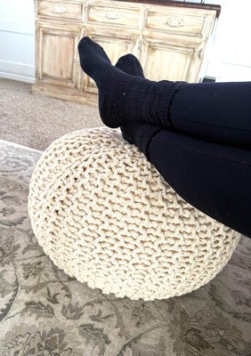 [This review was collected as part of a promotion.] I love this round Pouf footstool ottoman, it’s so sturdy and is made with great quality. I love the rope texture which makes it look stylish in any room! The firmness holds up well and is perfect for the couch or under a desk!