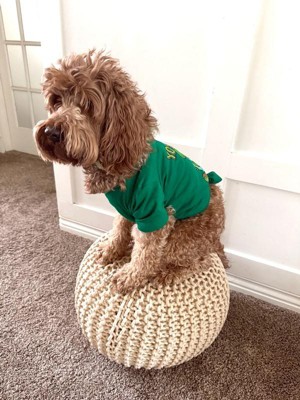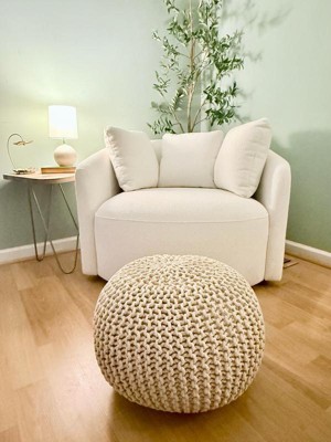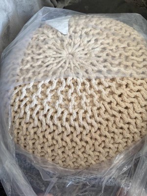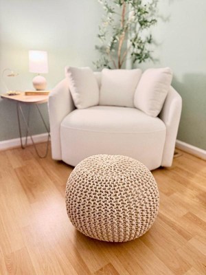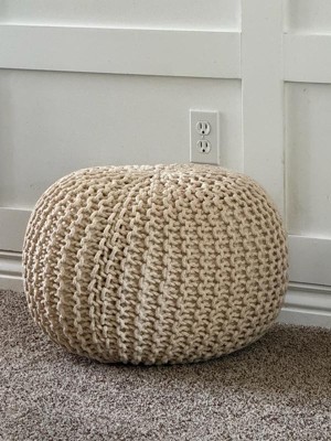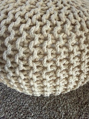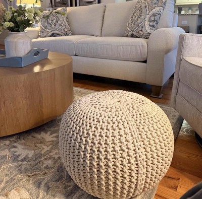 A stylish, soft knitted pouf that works well as a
