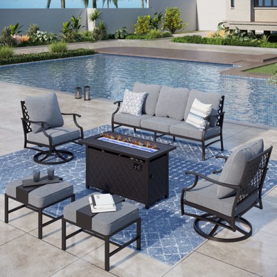 Captiva Designs 4PCS Patio Outdoor Conversation Fire Pit Set with Swivel Armchairs for Garden, Poolside, Backyard Grey
