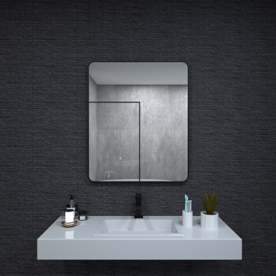 The mirror has a sleek, rounded rectangular shape, offering a modern, minimalist look that works well with various bathroom styles, from contemporary to classic. The aluminum frame is lightweight yet strong, ensuring that the mirror remains stable while being resistant to wear and corrosion over time. With its smooth, clear surface, the mirror provides a distortion-free reflection, perfect for grooming, applying makeup, or simply adding a touch of elegance to your space.