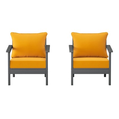 WestinTrends Avalon Outdoor HDPE Deep Seating Modular Armless Patio Chair with Patio Cushions, Gray/Yellow