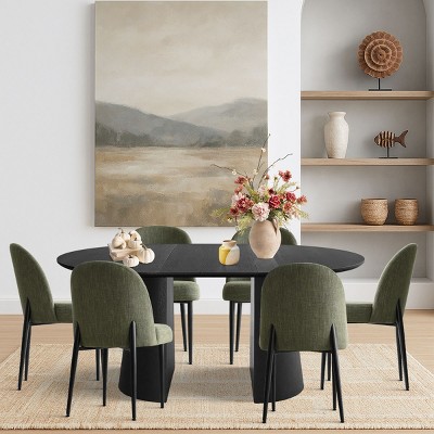 LeisureMod Lawrence 7-Piece Dining Set with Folding Acrylic Dining Chairs and Rectangular Wood Dining Table Jade Green