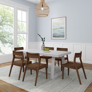 - Quality Wood Dining Table and Chairs: Dining table features a tabletop with 3 solid wood panels and solid wood legs for a classic look and extra durability; Kitchen table and 6 solid wood Chairs feature non-toxic finishes for a clean and healthy home
