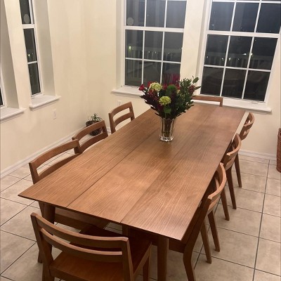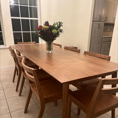 I love this table - it is simple and elegant, and garners lots of compliments. We bought the matching bench and had a set of chestnut Windsor-style chairs, and the entire ensemble looks great together. My only comment (and the cause of the 4 star review) is that the wood is soft and can ding easily. I would recommend a clear plastic/acrylic cover to prevent damage.