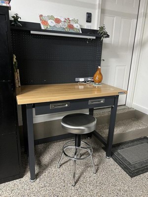 This is a first class stool that pairs perfectly with my Seville Classics Workbench in our garage. I really like the how comfortable the contoured stainless steel seat is and the quality will make it last a lifetime!