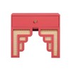 Inspired by the Art Moderne style, the Suzie Nightstand alludes to Palm Springs' art-deco design through its bold colors and curvaceous form. This wooden nightstand features a soft close drawer for practicality; while its rounded edges and woven rattan details add a playful twist. The Suzie will cement itself as the perfect balance between contemporary living with a touch of glamour in your space!