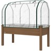 Outsunny Raised Garden Bed with PE Greenhouse Cover Outdoor Elevated Wood Planter Box for Herbs, Vegetables, for Patio, Backyard, Balcony, Brown
