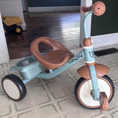 Costway Kids Tricycle Toddler Trike with Adjustable Seat & Storage Basket 3 Wheel Bike Green