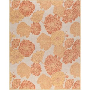 Let Spring bloom all year round with this coral orange Garden Oasis Collection outdoor rug. Bold blooming flowers adorn its flatwoven surface in a bold color contrast sure to wow friends and family. This versatile floral rug is a stylish, low-maintenance way to refresh your space in an instant. Place it on your patio, porch, balcony, or deck to create cozier outdoor conversation spaces. This rug is also great for use in the busiest rooms inside your house, including the kitchen, living room, and bathroom. Hand washable outdoors: rinse with a hose and air dry.