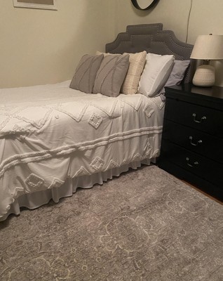 What a gorgeous area rug! You can tell it’s made very well and built to last a long time. It came packaged nicely in a lot of plastic and protection. I bought the grey one and the colors are soft and muted, just what I was looking for to match my grey upholstered bed. My bedroom has a lot of black, wood tones, white, and grey. This rug is neutral so it really goes with a lot. I also like the subtle pattern in the rug. It’s understated so it doesn’t overwhelm the space. This was a great purchase.