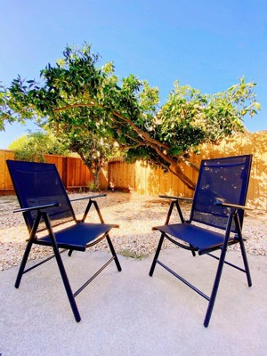 • Personalized Relaxation Experience: Featuring seven adjustable recline settings from 100° to 135°, along with breathable black textilene sling fabric and high backs, these chairs ensure exceptional comfort for all your outdoor activities.