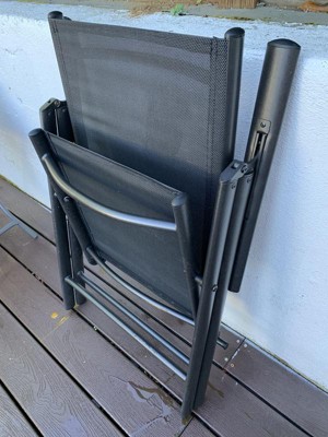 I bought these chairs about a month ago and have been enjoying using them on the patio for breaks. They held up fine in a heavy rain day because I forgot to bring them in. They’re compact so I can fold them up and hide them under the stairs of my patio when not in use. The reclining feature is great and very comfortable.
