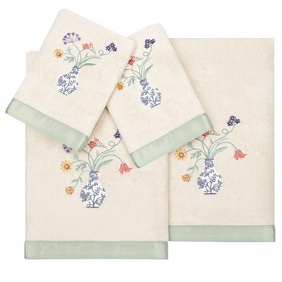 Linum Home Textiles 100% Turkish Cotton MARIPOSA 4PC Embellished Towel Set-Beige-2 Pcs Bath 2 Pcs Hand Towel