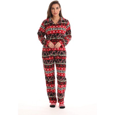 Just Love Womens Plush Pajama Pant Set with Matching Socks Fun, Cozy Sleepwear with Sayings (Candy Cane Black, X-Large)