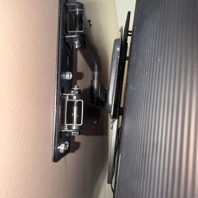 Decent tv mount for the price. Screws and spacers were not universal enough to fit our tv - fortunately I had other screws I was able to use to make it work. Otherwise, installation was easy. Part of the arm of the mount can rub the wall if you’re not careful, but a felt pad around the part that would hit fixed that problem immediately. Fit on the wall was easy with two screws in a vertical line into a stud in our case. I received an incentive to write this review.