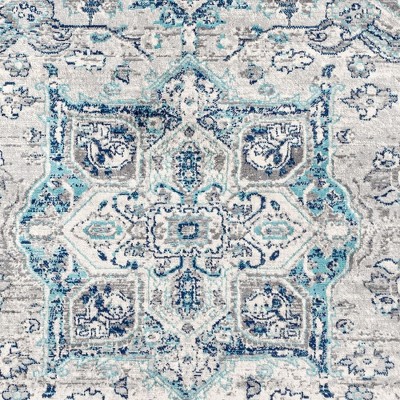 JONATHAN Y Modern Vintage Medallion Light Gray/Blue 8 ft. Round Area Rug, Non-Shedding, Easy-Clean, Durable Synthetic Fibers