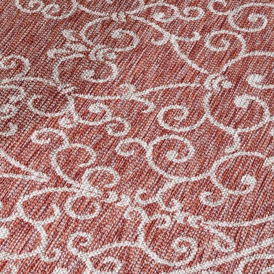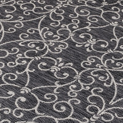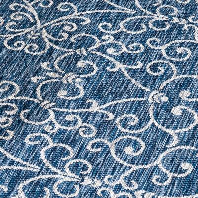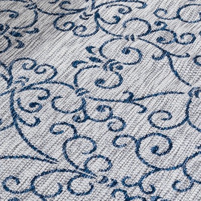 JONATHAN Y Charleston Vintage Filigree Textured Weave Navy/Gray 9 ft. Round Indoor/Outdoor Area Rug, Non-Shedding, Easy-Clean