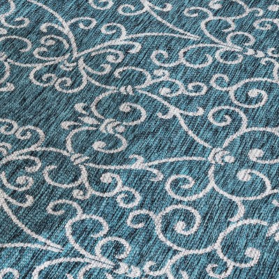 We absolutely love this rug and its color. It’s even prettier in person. The blue is beautiful. I may order another one for our lower deck.