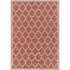 Our popular geometric design is inspired by Moroccan tile patterns. This classic rug adds eclectic style to an outdoor porch or patio. Mingled tones of red and rust with a beige ogee trellis pattern give this rug a hand-woven texture. The flatweave design is great for high-traffic spaces indoors too.