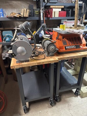 Solid built unit. Urethane wood finish more like furniture than shop work top. Think an oiled wood finish would be better suited to maintain. Also wood be better to have two casters as non-swivel to improve stability for a work station.