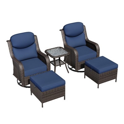 • Hand-woven PE Wicker: The swivel rocking chairs are fully wrapped in hand-woven PE wicker, offering excellent fade resistance and durability to prevent deformation and cracking.