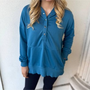 Whether you're running around town or lounging at home, this sweatshirt works for both.Introducing the BiBi Hooded Pullover in a soothing Sage hue, perfect for elevating your casual wardrobe. This women's sweatshirt features a hooded neckline and long sleeves, offering a relaxed, loose fit that's easy to wear. Its pull-on closure and practical pockets make it both stylish and functional. Complete your look with this effortlessly chic addition to your collection.