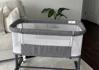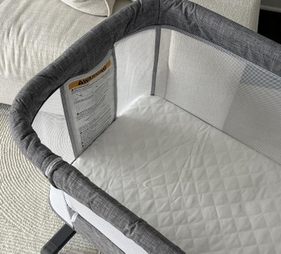 I love it so much. It’s so nice to be able to roll him around our first floor when I’m in the kitchen or the living room or even my office. The only thing I don’t like about it is the sheet that comes with. It is extremely hard to get back on.