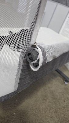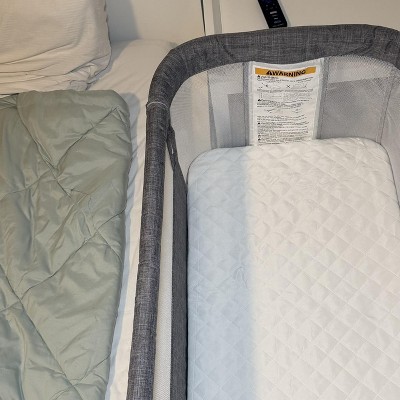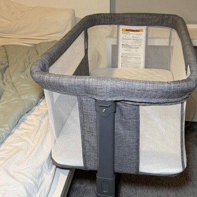 A: If the bassinet is used in bedside sleeper mode (with the side unzipped/open), it must be securely attached to the adult bed. This is required for your baby’s safety and to prevent any gaps or movement.