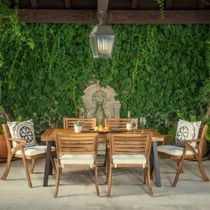 Christopher Knight Home Spanish Bay Outdoor 7 Piece Acacia Wood and Rustic Metal Dining Set with Cushions - 2 of 4Christopher Knight Home Spanish Bay Outdoor 7 Piece Acacia Wood and Rustic Metal Dining Set with Cushions - 3 of 4Christopher Knight Home Spanish Bay Outdoor 7 Piece Acacia Wood and Rustic Metal Dining Set with Cushions - 4 of 4