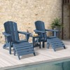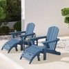 - Our HDPE Folding Reclining Plastic Adirondack Chair Set with Ottoman and Table will create a cozy getaway right outside your home, ,made with a weather-resistant composite, this Patio Chat Set brings a beautiful rustic influence to your backyard or patio and tops it off with a sleek modern finish, it matches perfectly for any deck, patio, or poolside relaxation to create a charming space for all to enjoy.