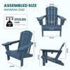 Seating Piece 1: Adirondack chair: 35.83 inches (H) x 20.28 inches (W) x 34.25 inches (D), 20.87 inches (seat depth)