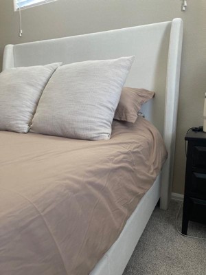 [This review was collected as part of a promotion.] My husband and I put together this new bed in just over an hour. The instructions were easy to follow and the tools were well organized and it even came with a nice socket wrench. The bed seems to be good quality and structure. The material is soft and a gorgeous creamy white. Easily goes with lots of different types of design.
