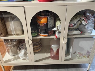 [This review was collected as part of a promotion.] This cabinet is so pretty and looks amazing in my space! I love the design, and it gives such a cool, modern vibe, especially with the arches. That said, it’s a little flimsier than I expected. It works fine for lighter storage, but I wouldn’t trust it with anything too heavy. I also had issues with moving it around the house safely. Assembly was incredibly easy though, I did it all myself. Overall, it’s a great statement piece, but I just wish it felt a bit sturdier.