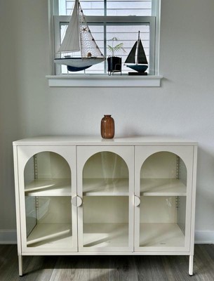 CosmoLiving by Cosmopolitan Chloe Metal Accent Cabinet With 3 Arched Glass Doors, Parchment