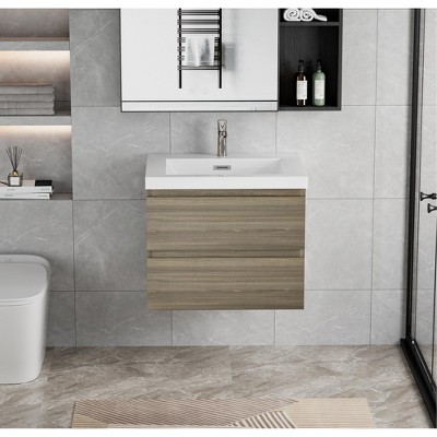Elevate your bathroom with this Floating Wall-Mounted Bathroom Vanity, combining sleek modern design with practical functionality. Available in light brown or white, and with width options of 18", 16", or 20", this vanity is perfect for small bathrooms, offering ample storage without sacrificing style. The integrated ceramic sink, crafted from high-quality materials, features a smooth, easy-to-clean surface. The soft-close cabinet doors ensure quiet, gentle operation, while the floating design adds a contemporary touch and saves valuable floor space. With durable, scratch-resistant materials and a minimalist yet luxurious design, this vanity makes a lasting addition to your bathroom.