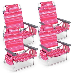 Costway 4-Pack Folding Backpack Beach Chair 5-Position Outdoor Reclining Chairs with Pillow Pink/Yellow/Blue/Dark Pink/Dark Green/Dark Blue/Navy Blue