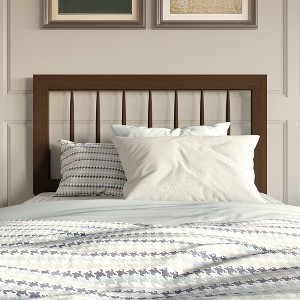 - Blends classic wooden headboard with vertical round rods for traditional warmth and modern geometric flair