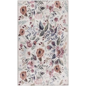 Add vintage charm to your home with this pink and ivory Nourison Washables floral rug. The oversized watercolor-inspired pattern channels a farmhouse vibe, making it perfect for adding warmth to any space. Made from durable materials, this washable rug features a non-slip backing for added safety on hard floors.