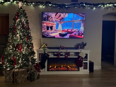 FLEXIBLE STORAGE FOR UP TO 75" TVS: Adjustable shelves behind cabinet doors and an open shelf above the fireplace for electronic components; designed for flat-screen TVs up to 75" and 95 lbs. with included cable management