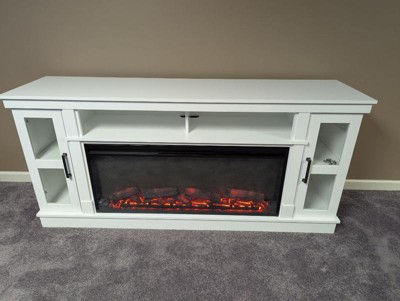 [This review was collected as part of a promotion.] The instructions were clear and easy to assemble in under 2 hrs. The final assembled product was very heavy, so I suggest building it where you plan to put it. The fireplace looks fantastic and works well. It has a few brightness levels and can heat to a specified temperature or stay on continuously. The heat and lightning can also be turned off separately, so you can have the firelight effect without out the heater and vice versa. The glass cabinet looks great, and the finish overall on the wood is smooth. It has a lot of storage space and seems sturdy enough to hold it's rated 95lbs. The side shelf height is adjustable. This is a fantastic upgrade if you're looking for a new TV stand.