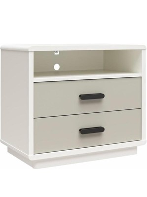 [This review was collected as part of a promotion.] The Valencia 2-Drawer Nightstand, Taupe & White, is really nice and sleek! It came in one, compact box and was easy to assemble! The material feels durable and long-lasting! I love that the nightstand is neutral so it should match many styles! The storage area in it is roomy for a nightstand!