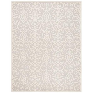 The rug's design features a symphony of intricate scrollwork, producing a mesmerizing pattern that can elevate the ambiance of your living space. The harmonious blend of the ornate motif with the solid grey backdrop results in a piece that can seamlessly integrate into and accentuate a variety of interior styles.