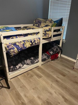 [This review was collected as part of a promotion.] Give your little adventurers the gift of great sleep with the DHP Birley Twin over Twin Bunk Bed. Its low-to-the-ground design ensures easy twin bunk bed access, making bedtime a breeze for your young kids and teens. Our stylishly painted solid wood bunk bed features 14-inch guardrails on the top bunk, providing enhanced safety, and includes a sturdy three-step ladder for secure access. Versatility is key with this junior bunk bed, optimizing your kid's bedroom with a bottom bunk that doubles as a cozy floor bed--ideal for siblings, sleepovers, or growing children. Our kids' bunk bed has a low bunk bed design, perfect for small spaces and rooms with low ceilings. The strong spruce wood platform bed frame fits two twin-size mattresses (not included), with the upper bunk being able to accommodate a 6" spring mattress thanks to 13 sturdy wooden slats that support up to 200 lbs. without a box spring foundation.