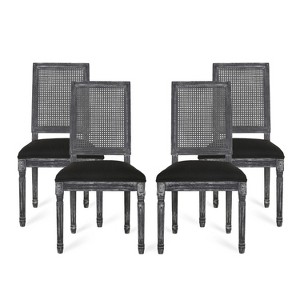 Christopher Knight Home Brownell French Country Wood and Cane Upholstered Dining Chairs (Set of 4), Black/Gray