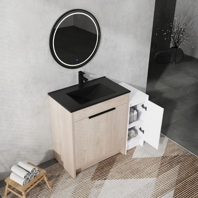 - Space-Saving Vanity with Additional Cabinet: Available in 24" or 30" sizes, this freestanding vanity includes a spacious cabinet for extra storage, making it ideal for small or medium bathrooms where efficient organization is essential.
