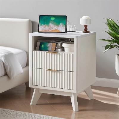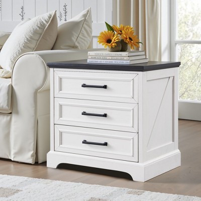 Nightstand with Charging Station, 24" Wide Farmhouse End Table with 3 Drawers & Handles, Night Stand Bedside Table for Bedroom, Living Room
