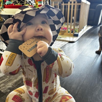 [This review was collected as part of a promotion.] This is an adorable sun hat! I like the string that you can adjust under their chin to keep it on and from blowing away. The flexible brim is a great feature so baby can see but still be protected from having the sun in their eyes. My baby is 8 months old and this fits her well with room to grow. The design is adorable too and neutral enough that it will go with a lot of things. I received an incentive to write this review.
