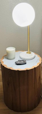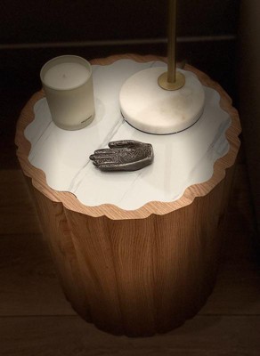 [This review was collected as part of a promotion.] It looks modern and chic, the wooden details look great, although the fake marble does lower the quality a bit, it's not light but not heavy either, the size works well.