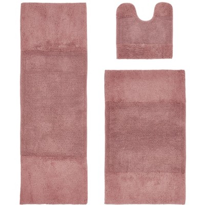 Better Trends Lux 100% Cotton Tufted Solid Reversible Bath Rug Set 5 PC (18" x 20" | 17" x 24" | 20" x 20" | 24" x 40" | 20" x 60") - Pink