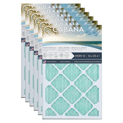Cabana Air Filters 6 Pack Home HVAC Furnace Air Filters, Capture Unwanted Particles with Pleated Design, MERV 11, 16 x 25 x 1, White